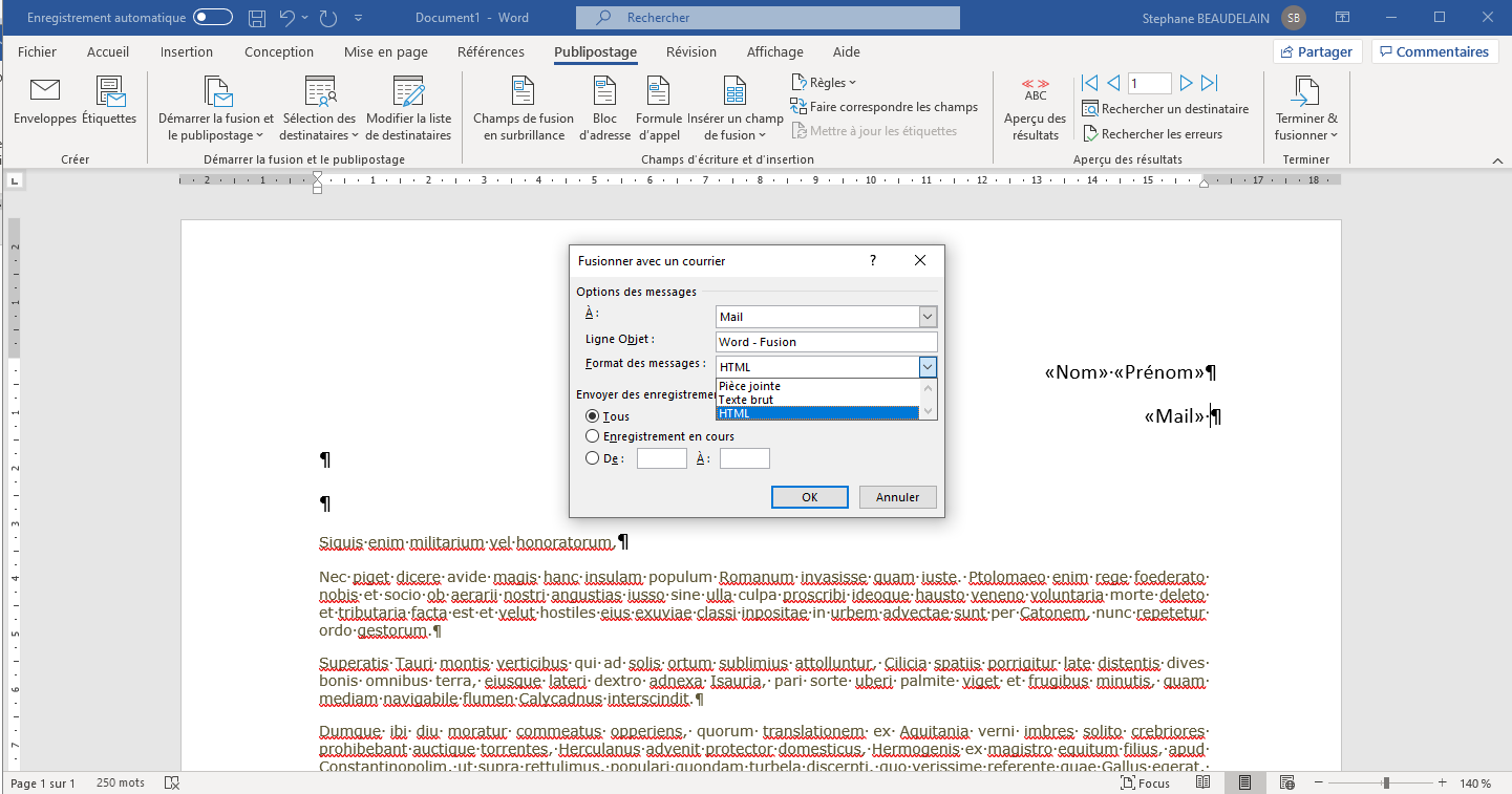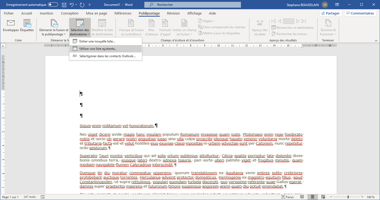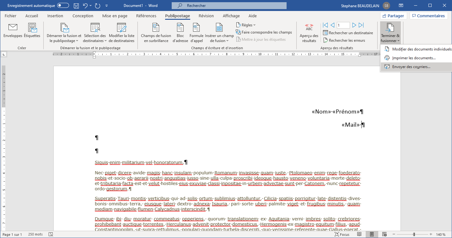 - Cliquer sur "Publipostage" dans la barre du menu en haut.