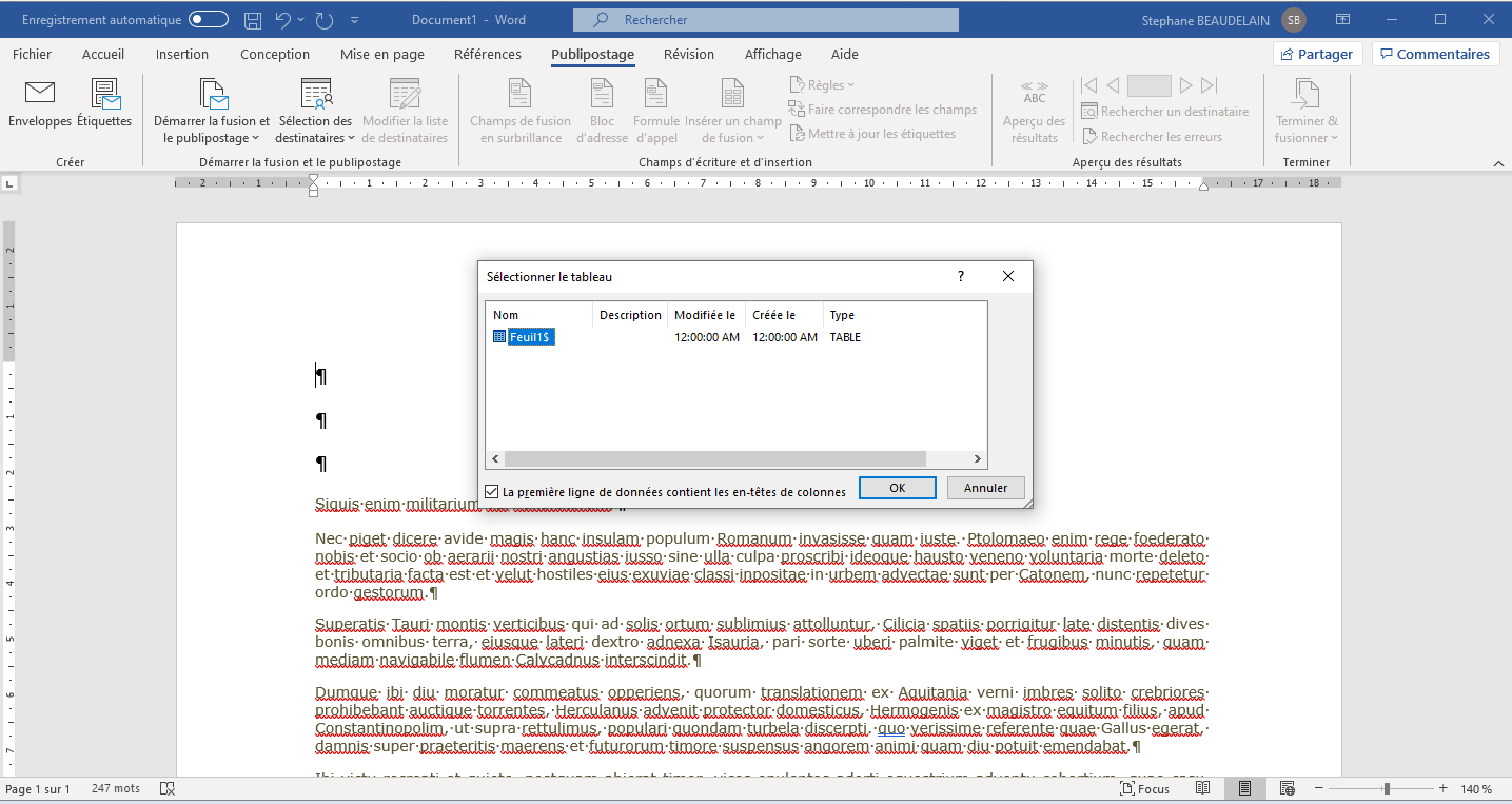 - Cliquer sur "Sélection des destinataires" du ruban.