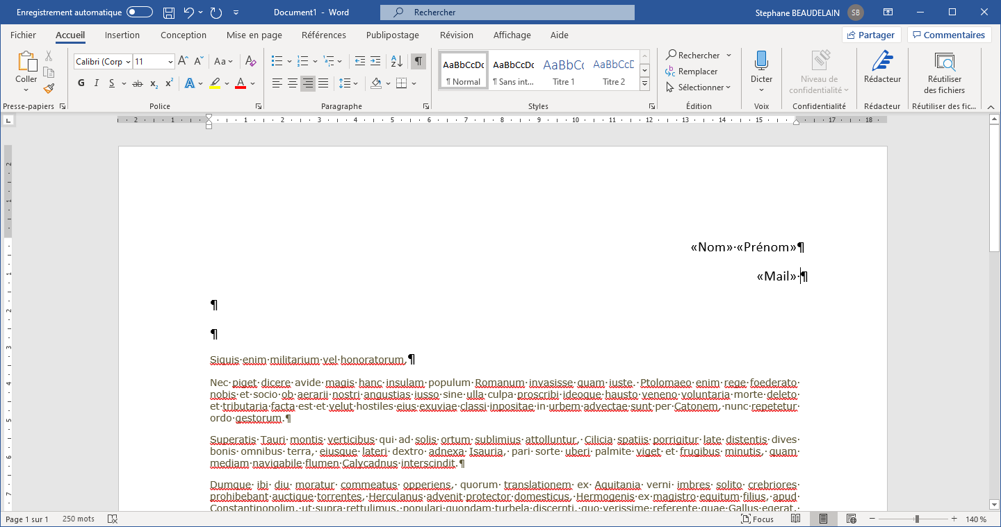 Insérer les champs dans le document de base.