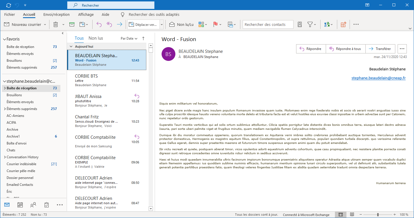 Fusionner avec un courrier